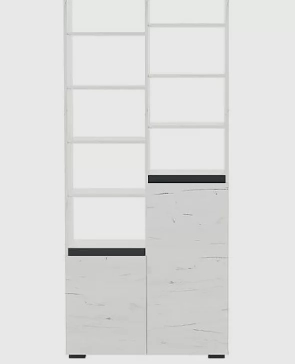 ГРЕТТА Стеллаж 2С открытый (ш900*г411*в2120мм), ЛДСП дуб крафт белый-антрацит/ЛДСП дуб крафт белый