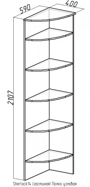 Стеллаж с лекальными полочками гармонично завершит шкафную группу высотой 2107 мм. Из одного комплекта деталей собирается на глубину 400 мм и 590 мм, что делает полку универсальной для любой композиции.