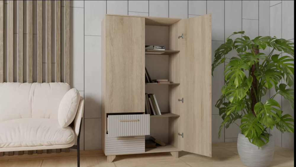 Шкаф 2-х створчатый Копенгаген (Дуб Сонома/Белый матовый)