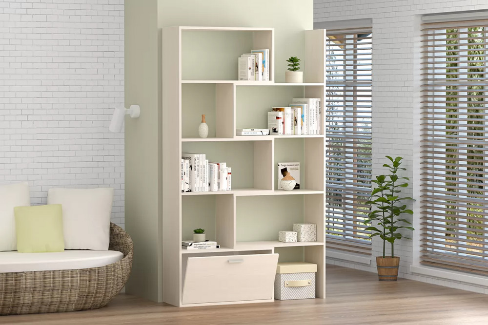 Стеллаж раздвижной, дуб крафт золотой/белый 718/1300 мм Диал