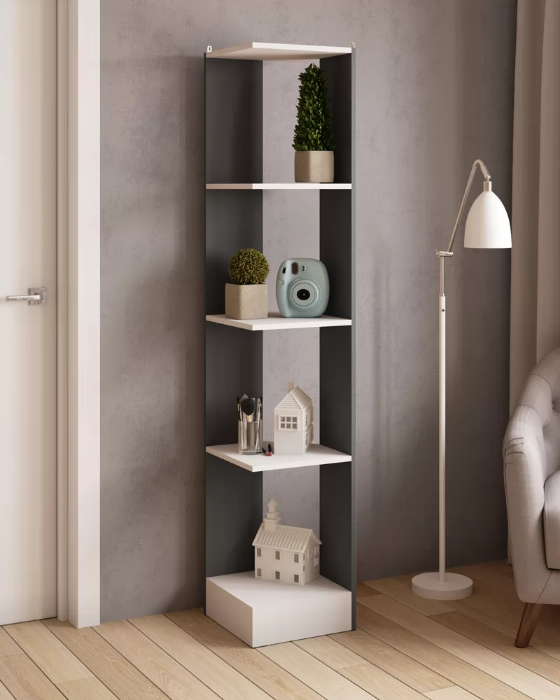 Стеллаж СТМ-1 (ш350*г350*в1766мм), ЛДСП Графит серый/ЛДСП Белый