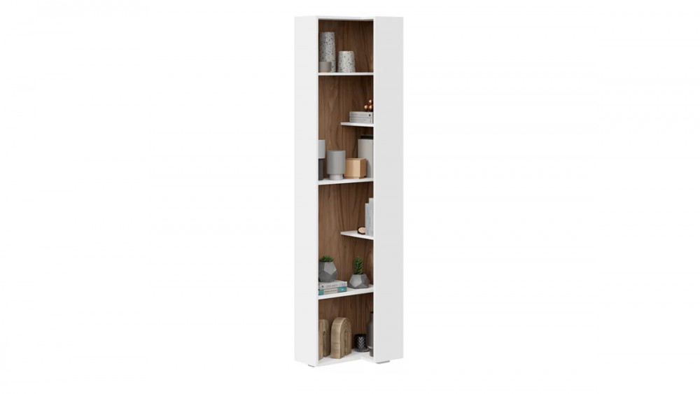 Стеллаж торцевой «Порто» Белый Жемчуг, Яблоня Беллуно, Белый софт