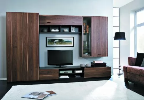 Набор корпусной мебели Ректус - интересное сочетание темных цветов и текстур подойдет самым взыскательным вкусовым потребностям. Темный металлический цвет ручек подчеркивает и дополняет стиль комплекта, а стеклянная вставка в навесной полке облегчает и завершает необычный стиль. Простая в исполнении, система великолепно впишется в любую гостиную.