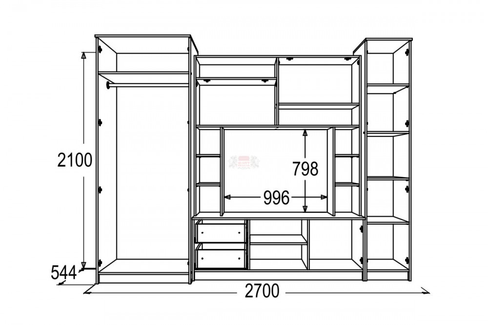 Габариты (ВхШхГ): 2100х2700х544 мм.