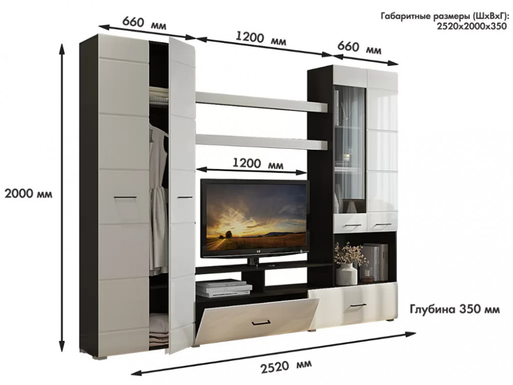 Габаритные размеры (ШхВхГ), мм: 2520х2000х350