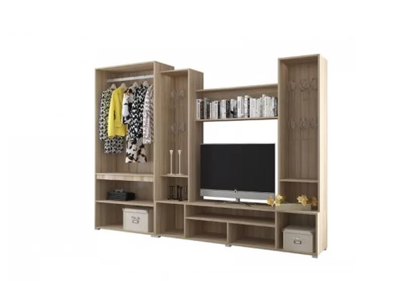 СИДНЕЙ-1 Центральная секция (ш1850*г430*в2000мм), ЛДСП Белый/ЛДСП Ателье светлое