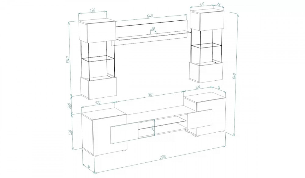 | Размер(Ш*Г*В): | 2200*354*1780 мм |