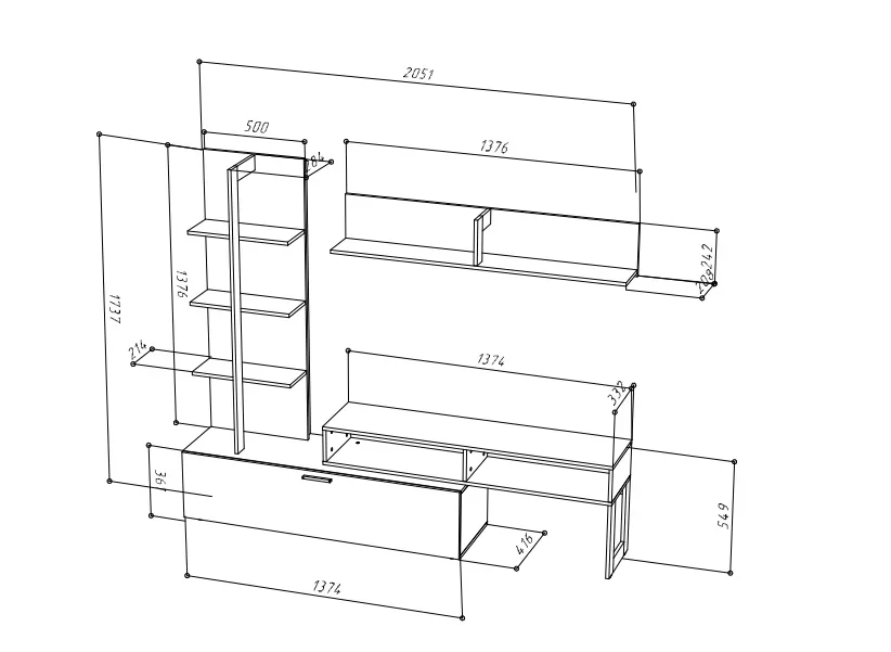 Размер (ШхГхВ): 2051х416х1737 мм