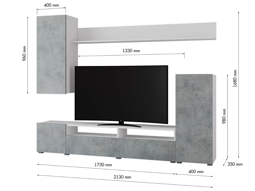 Размер ниши под ТВ: 1330 * 1152 мм