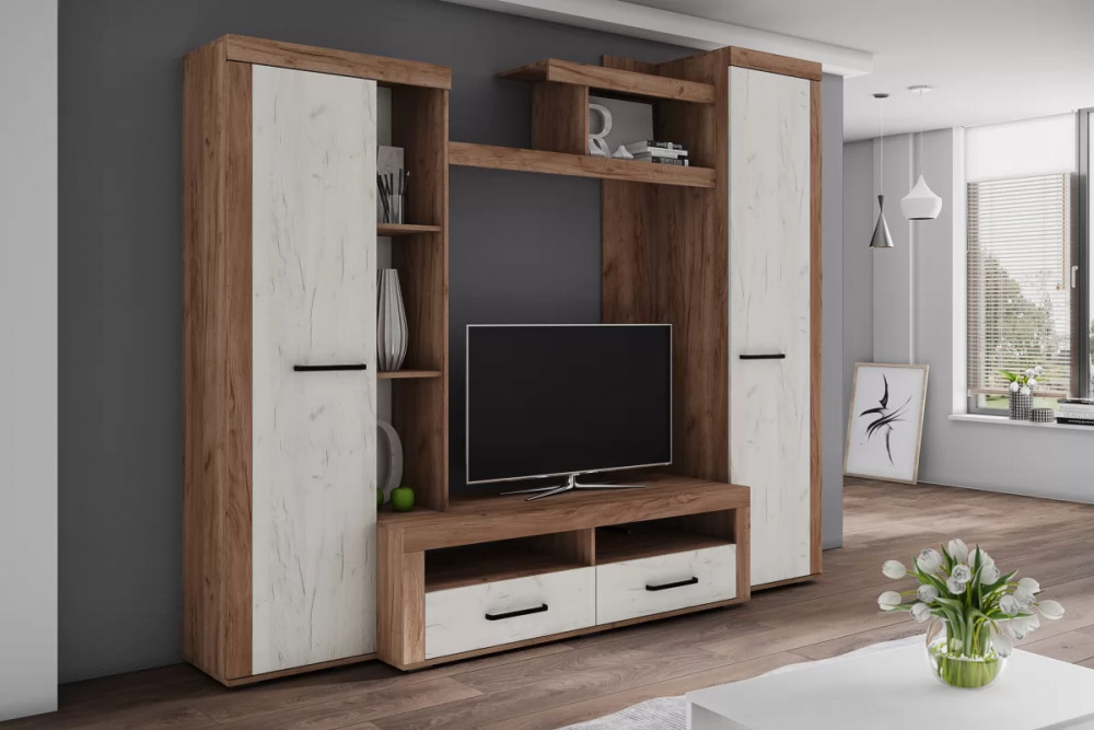 Гостиная Марсель-4 Дуб крафт табачный/Дуб крафт белый