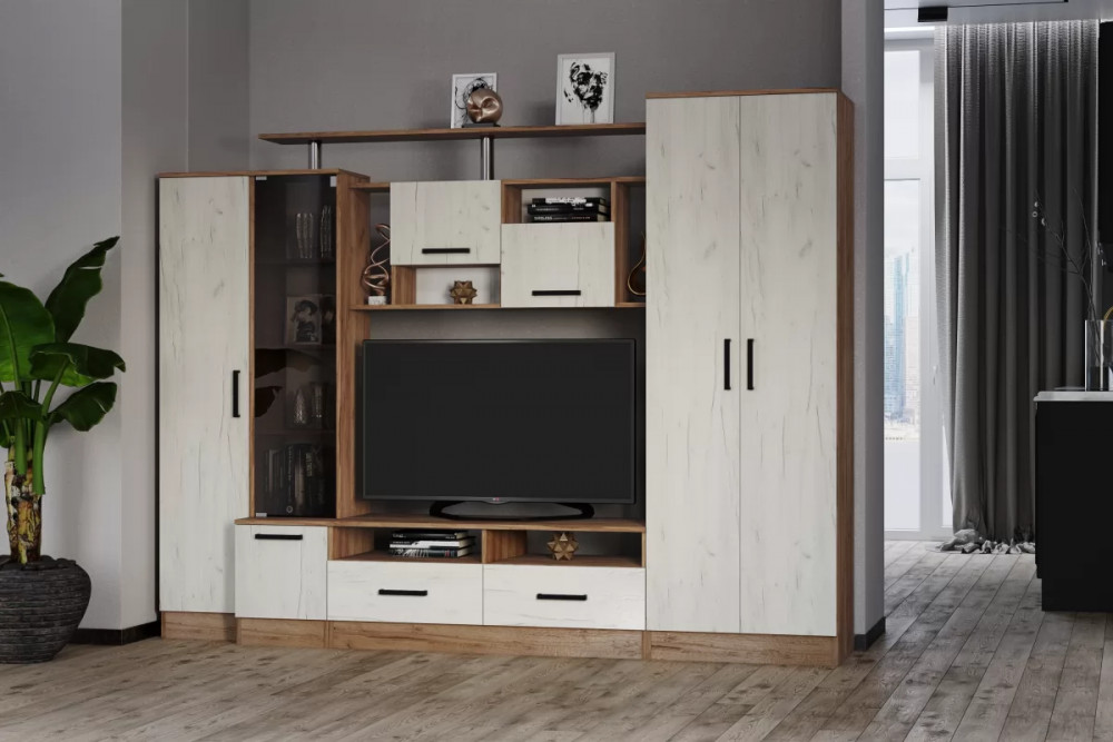 Гостиная СИДНЕЙ-2 (ш3000*г470*в2000мм), Белый/ЛДСП Дуб крафт золотой