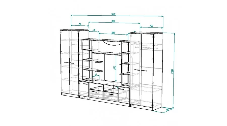 | Размер: | 3400(Ш) х 560(Г) х 2100(В) мм |