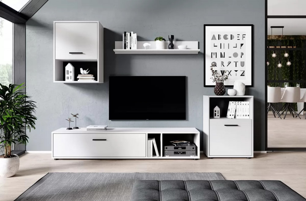 Гостиная Зефир К1 белое дерево/белый муар/белый