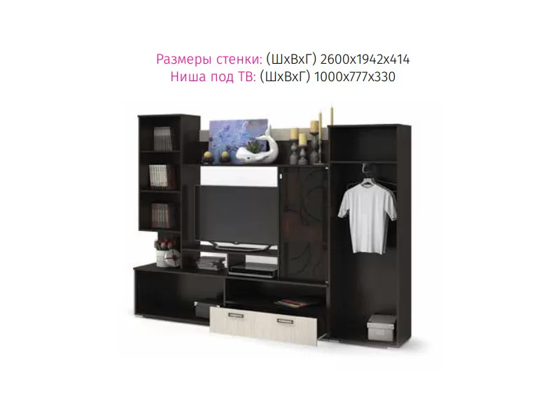 Ниша под ТВ (ШхГхВ): 1000х330х777 мм