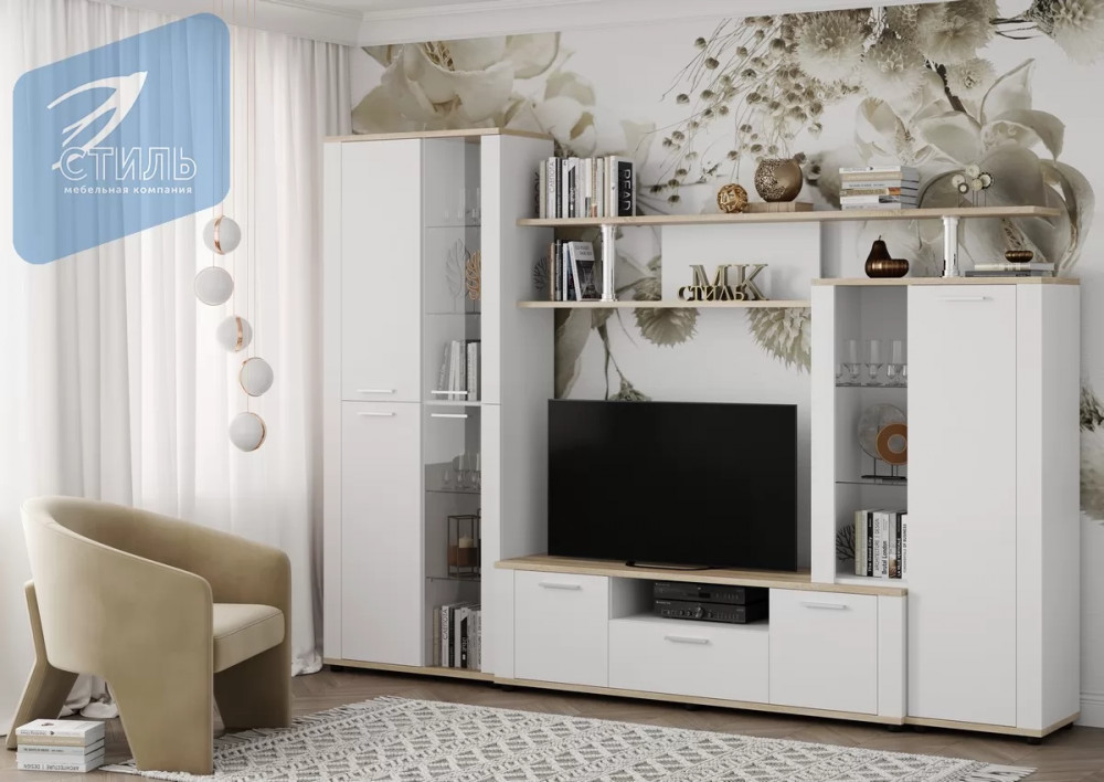 Гостиная Эго, набор №БГ-2, дуб крафт золотой/белый глянец Диал