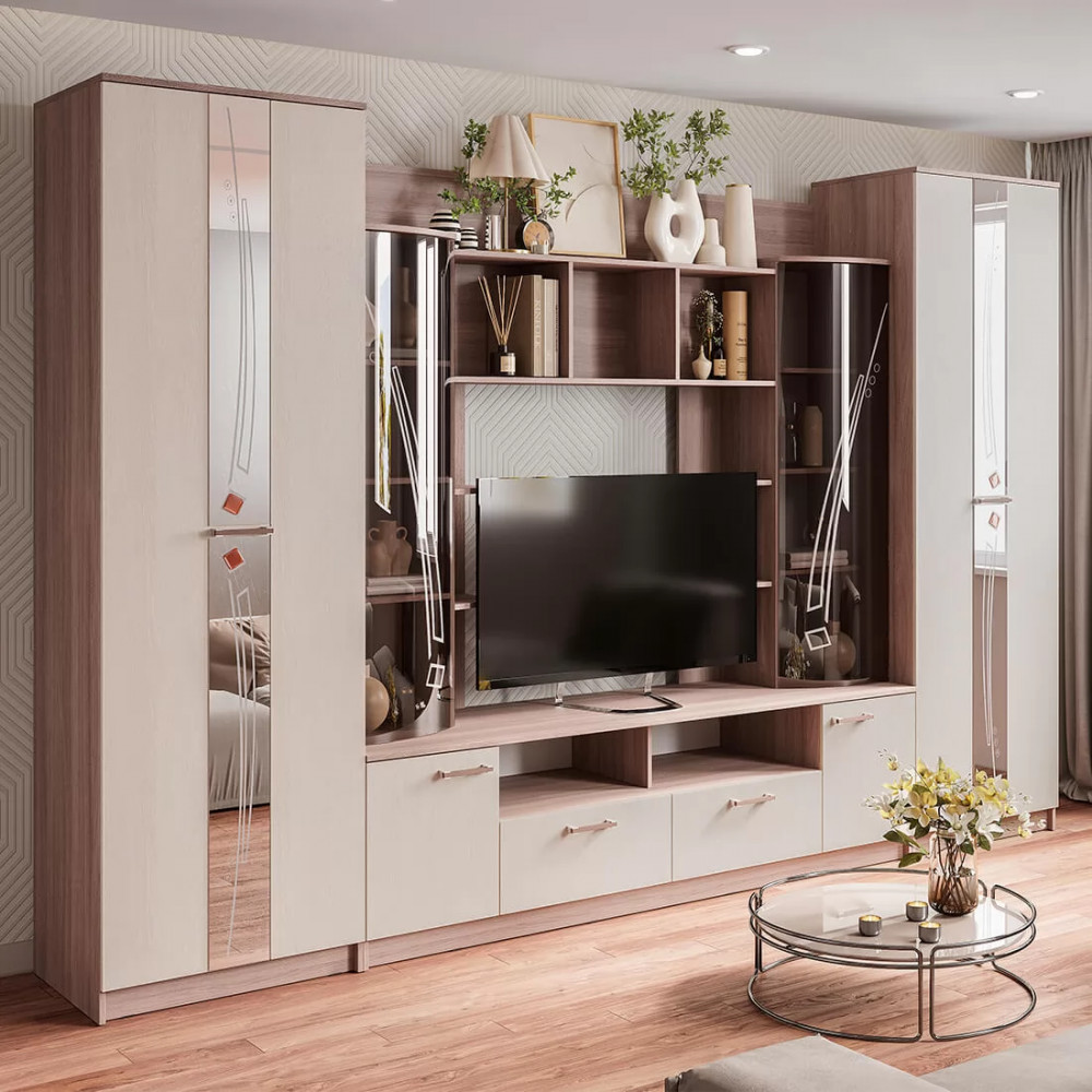 Элегантная гостиная Венеция. Декор - гнутые стекла с пескоструйной обработкой, фьюзингом и стразами.