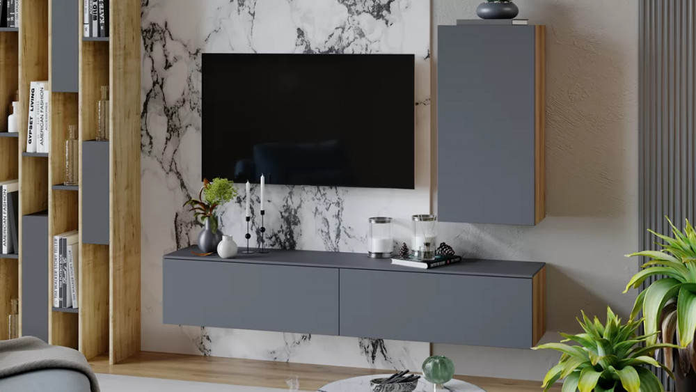 Тумба для теле- и радиоаппаратуры «Порто» Яблоня Беллуно, Графит софт