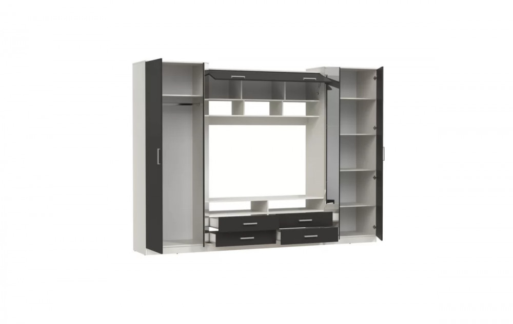 Шкаф многоцелевого назначения 91.01 Вена с зеркалом (белый / диамант серый / ДВПО: белый)
