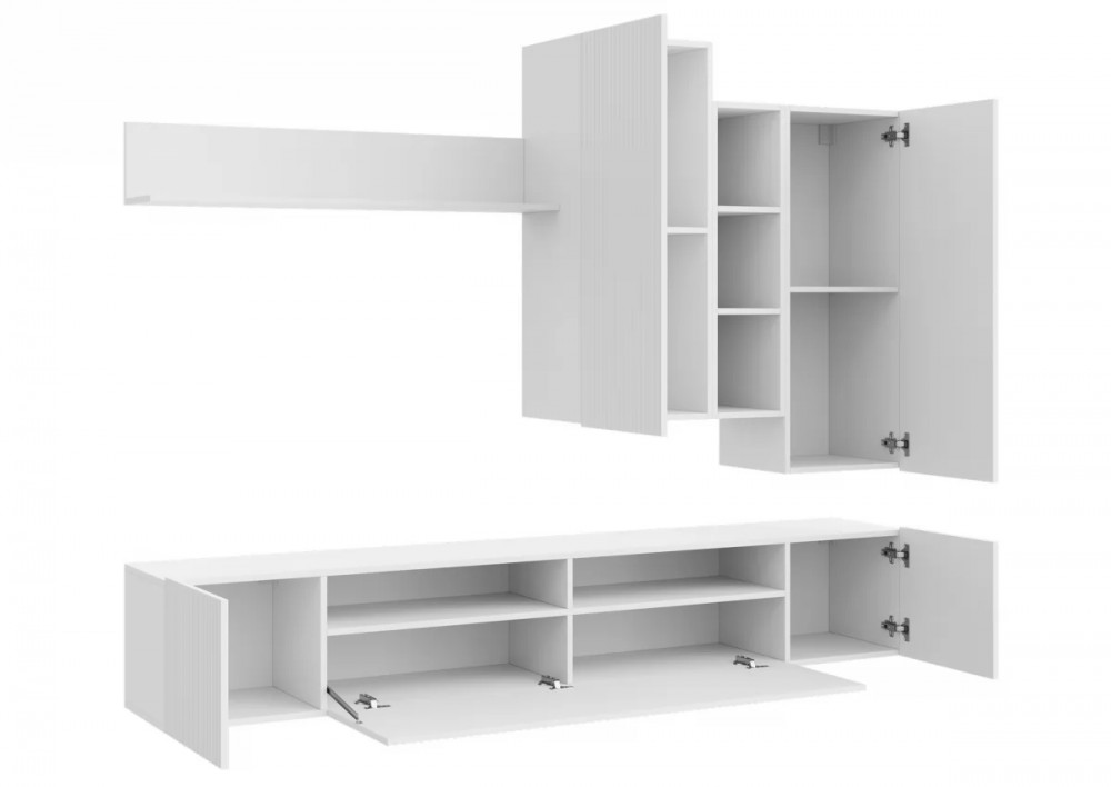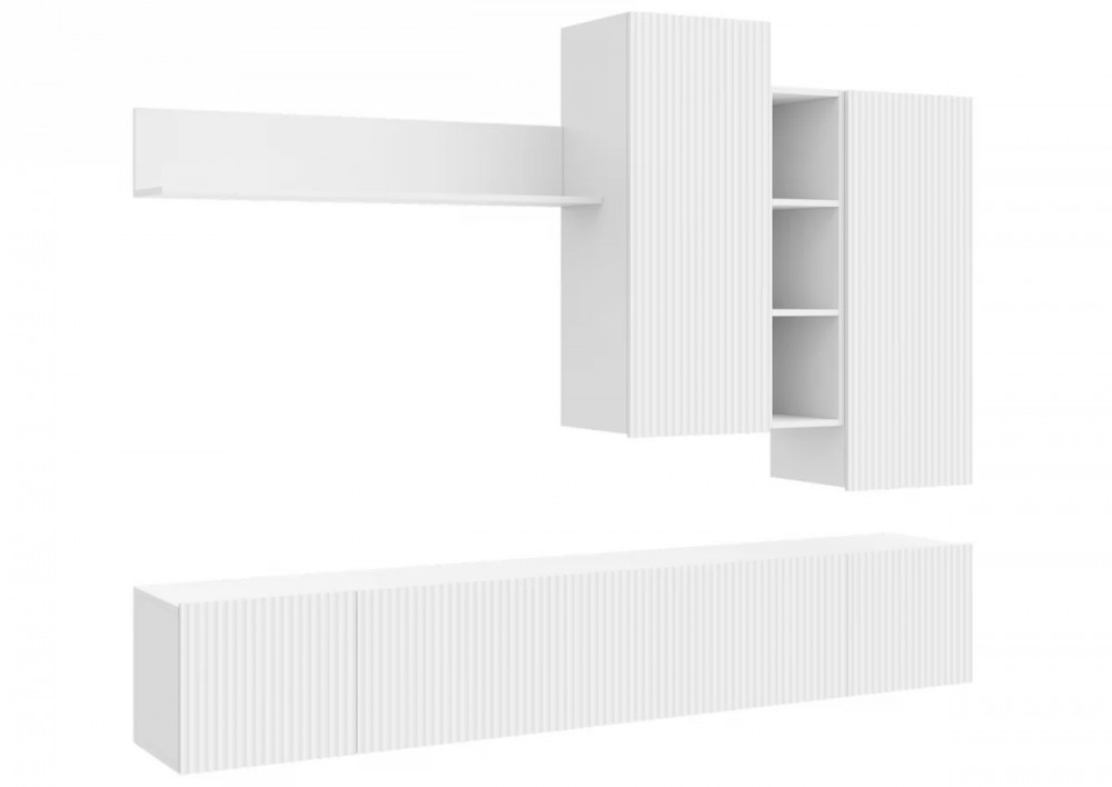 Гостиная Зефир К1 белое дерево/белый муар/белый