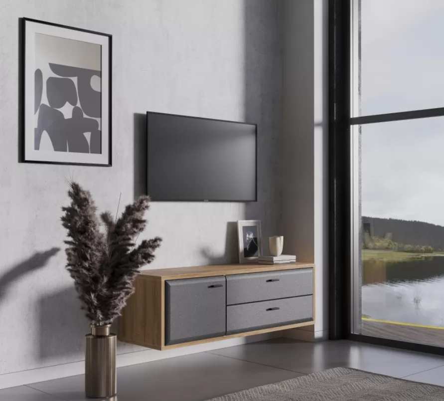 Тумба навесная Grace дуб наварра/графит RTV1D2S займет центральное место в современной гостиной.