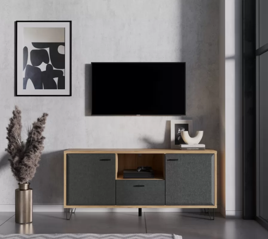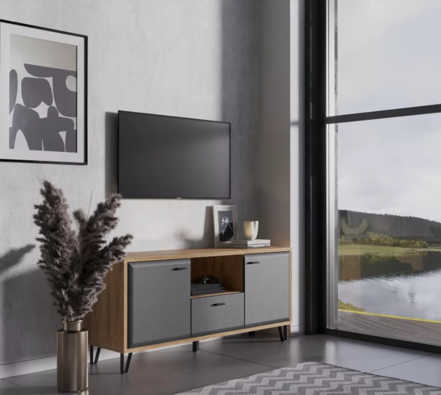 Тумба под телевизор с открытой нишей Grace дуб наварра/графит RTV2D1S станет стильным элементом современной гостиной.