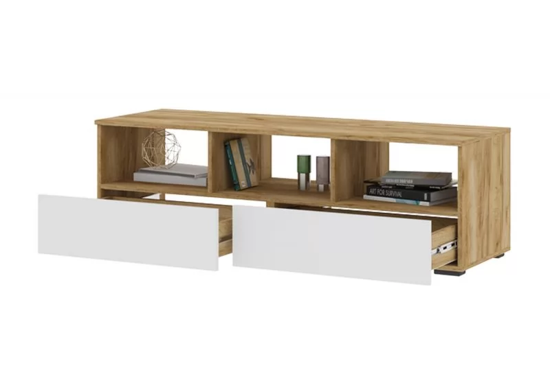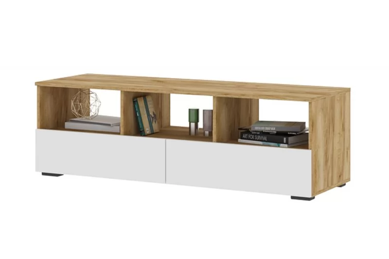 ХЕЛЕН ТБ02 Тумба ТВ (ш1402*г460*в442мм), Дуб Крафт Золотой/Белый