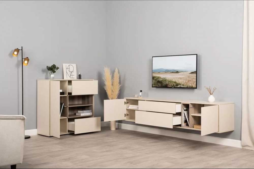 Благодаря нейтральному светлому оттенку и универсальности декора модули можно разместить в спальне, гостиной, прихожей.