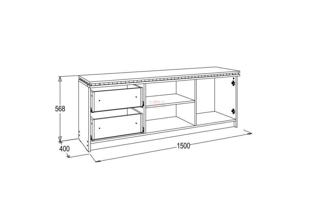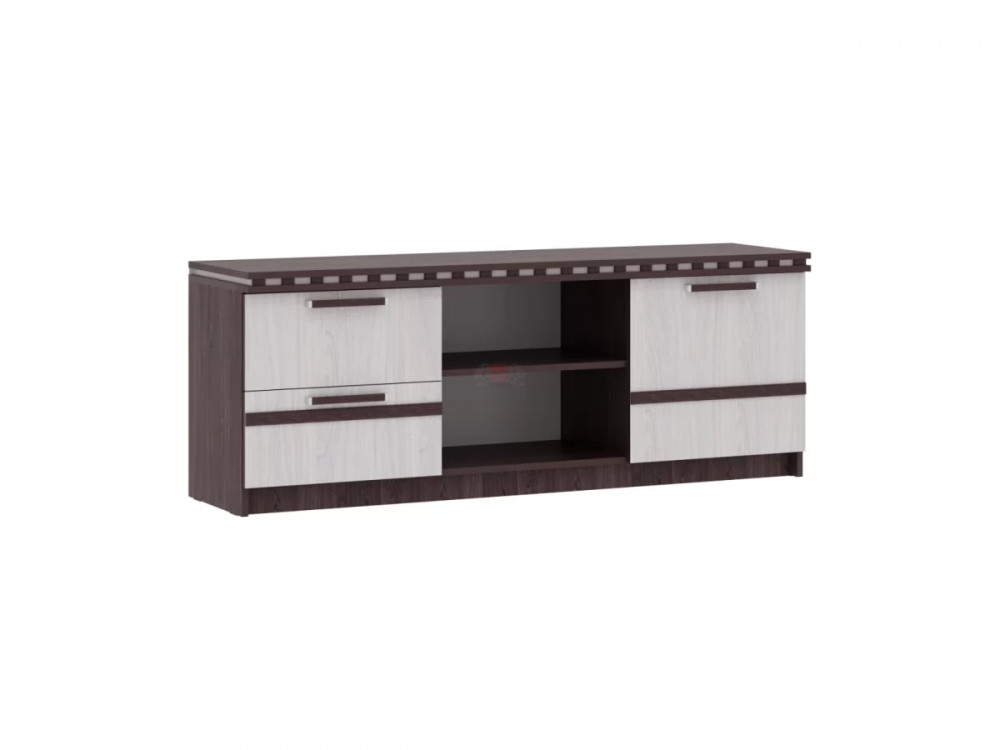 Тумба имеет вытянутую форму и просторную поверхность, на которой можно расположить даже самый крупный телевизор.