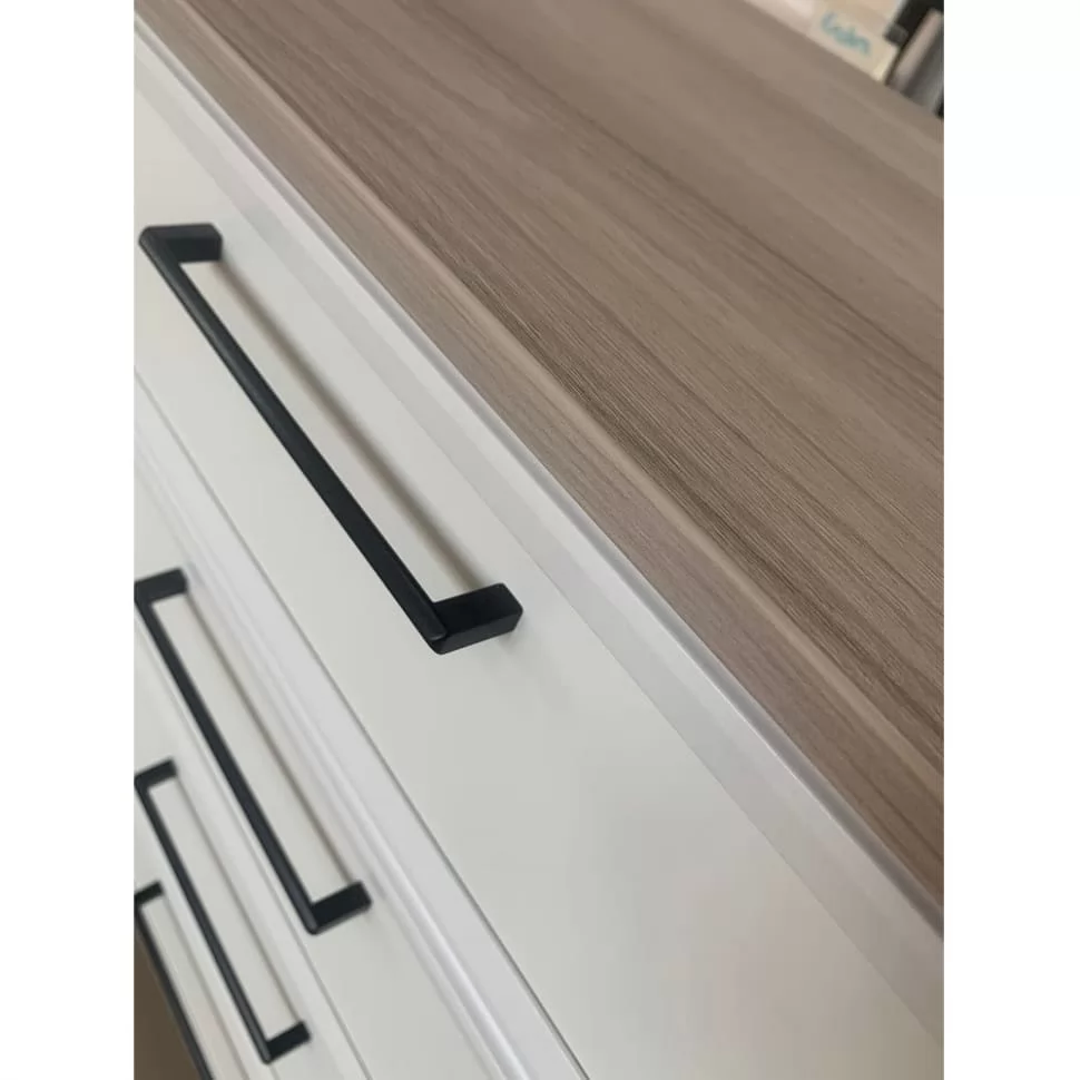 Мебель AURELIO представляет собой классическую мебель в современном исполнении. Корпус мебели изготовлен из высококачественного ЛДСП толщиной 16 мм, что обеспечивает прочность и долговечность конструкции. Фасады выполнены из МДФ с применением профиля, что придает им изысканный и стильный вид. Особое внимание стоит уделить рамочным фасадам шкафов, которые украшены стеклянными вставками и металлическими черными ручками. Это сочетание материалов придает мебели особый шарм и элегантность.