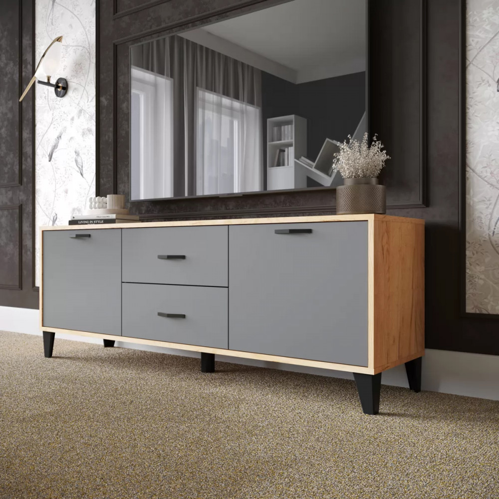 Тумба под ТВ ТВМ-2 (ш1600*г475*в500мм), ЛДСП Дуб крафт золотой /ЛДСП Графит