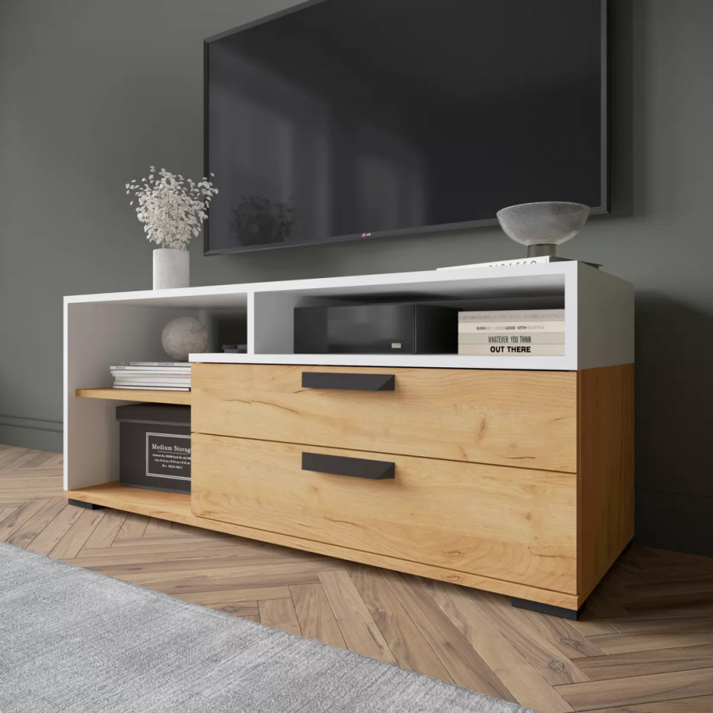 Тумба под ТВ ТВМ-3 (ш1400*г360*в400мм), ЛДСП Дуб крафт золотой /ЛДСП Белый