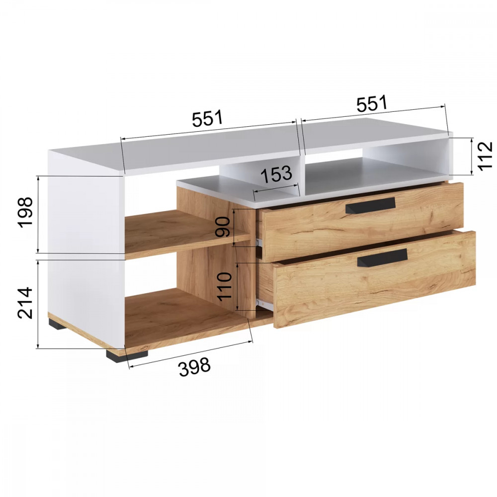 Тумба под ТВ ТВМ-2 (ш1600*г475*в500мм), ЛДСП Дуб крафт золотой /ЛДСП Белый