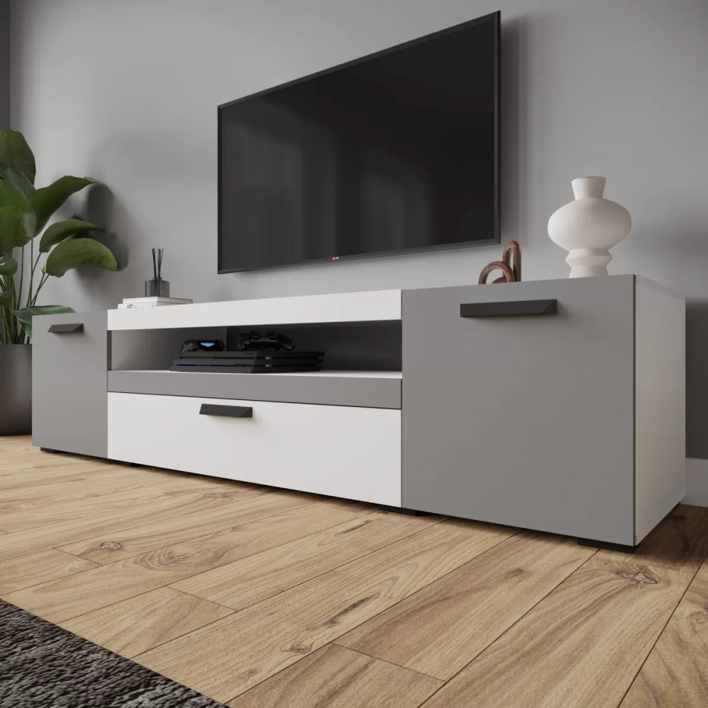 Тумба под ТВ ТВМ-8 (ш1900*г469*в459мм), ЛДСП Белый/ЛДСП Графит серый