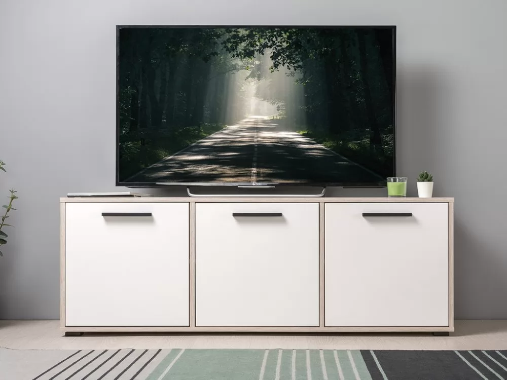 Тумба под ТВ Винтаж 13.283.02 будет отличным дополнением интерьера любой комнаты. Изделие поможет разместить телевизор для более комфортного просмотра новостей, сериалов и различных телепередач. Полки, скрытые за тремя распашными дверцами, пригодятся для хранения различных вещей и предметов. Декор мебели Винтаж имитирует крашеное дерево с глубокой фактурой потёртостями. А "софт-тач" покрытие пластиковых ручек делает их приятными и нежными на ощупь, а также придаёт им глубокий матовый цвет.
