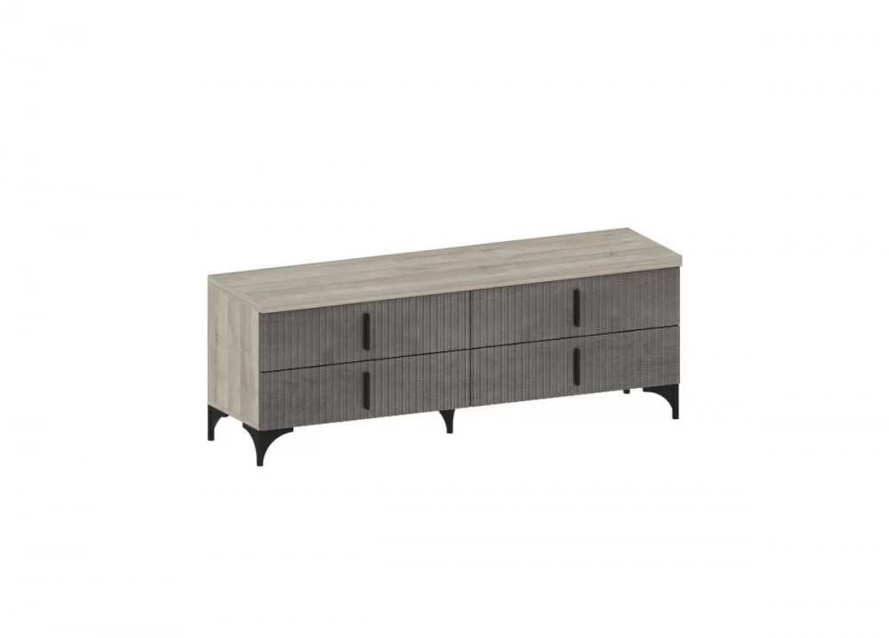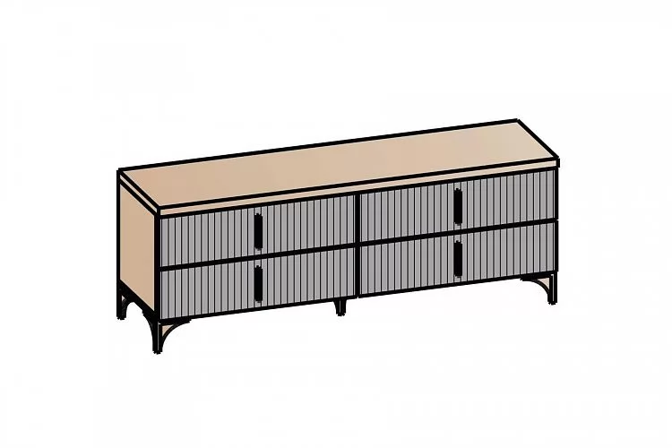 Мебель изготовлена из высококачественного материала ЛДСП — 16 мм, класса эмиссии Е1. Фасады с оригинальной фрезеровкой изготовлены из МДФ 16 мм под пленкой ПВХ в цвете Айронвуд серебро и Лофт голдэн пэлас. Тумбы декорированы крышкой толщиной 32 мм и облицованы кромкой 2 мм.