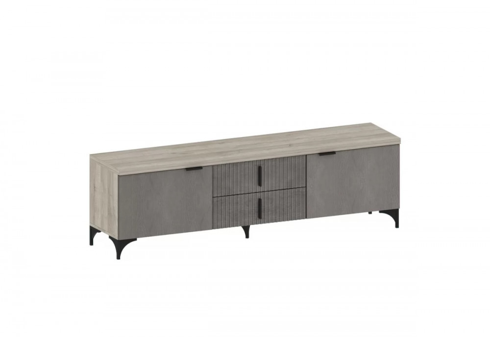 Мебель изготовлена из высококачественного материала ЛДСП — 16 мм, класса эмиссии Е1. Фасады с оригинальной фрезеровкой изготовлены из МДФ 16 мм под пленкой ПВХ в цвете Айронвуд серебро и Лофт голдэн пэлас. Тумбы декорированы крышкой толщиной 32 мм и облицованы кромкой 2 мм.