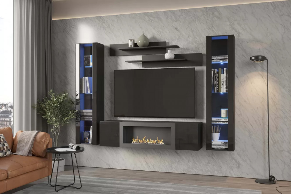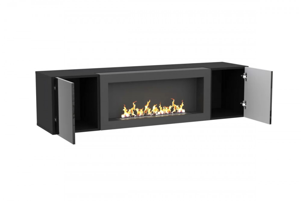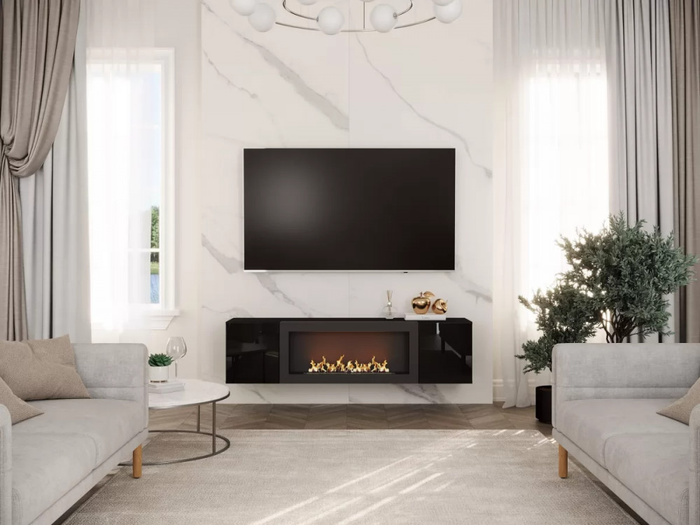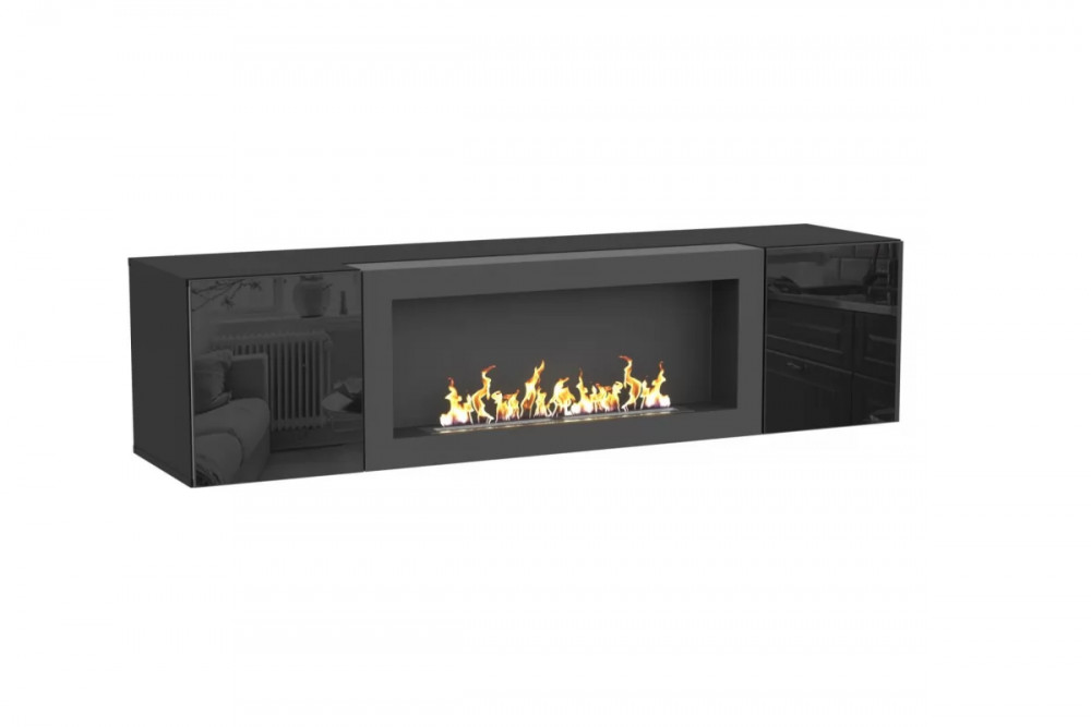 Тумба ТВ навесная с биокамином POINT ТИП-28 SBK Чёрный/Чёрный глянец НК-мебель