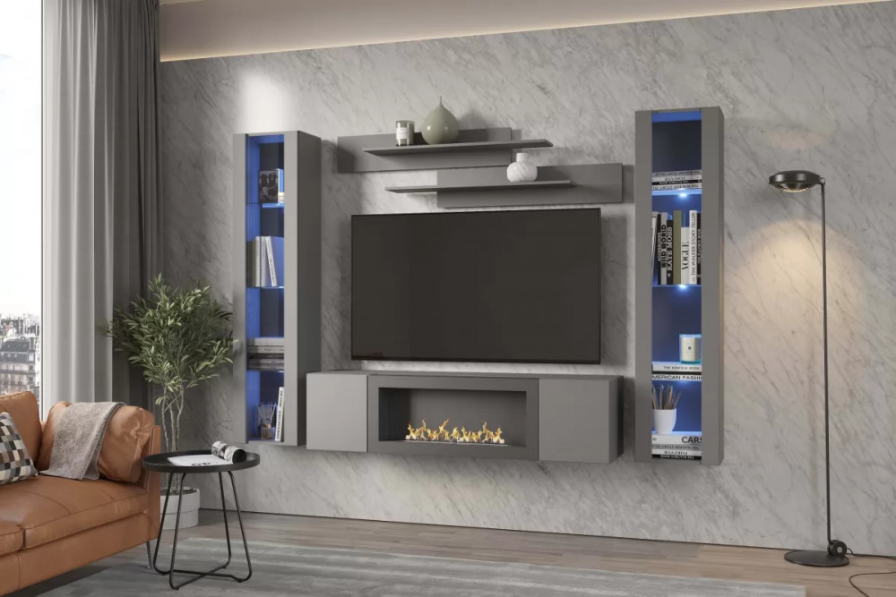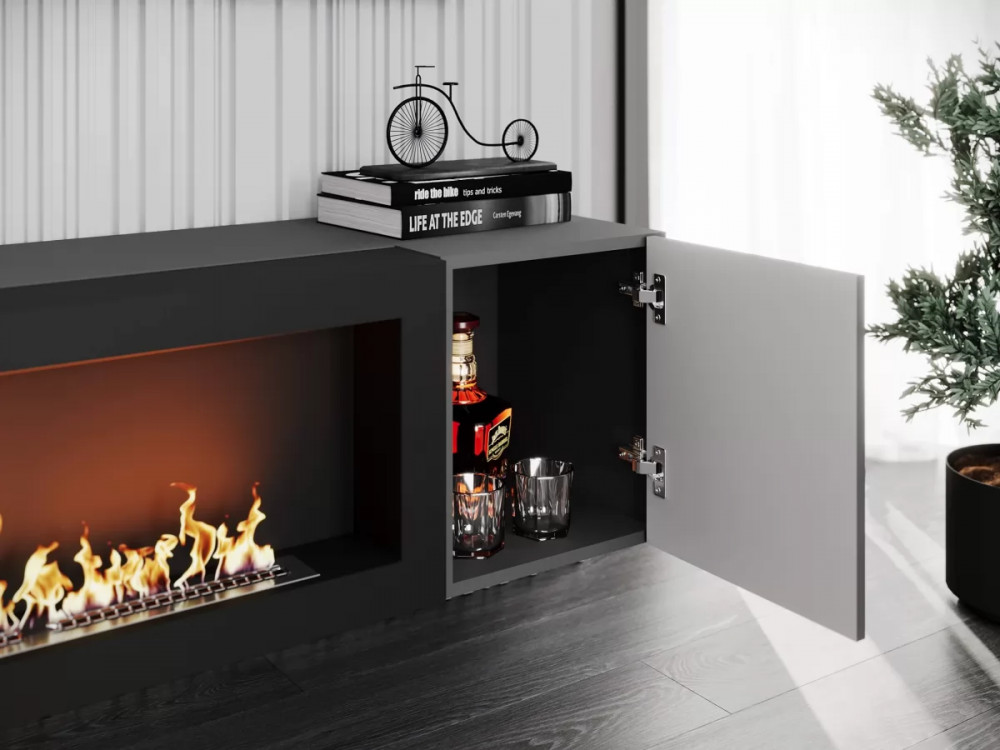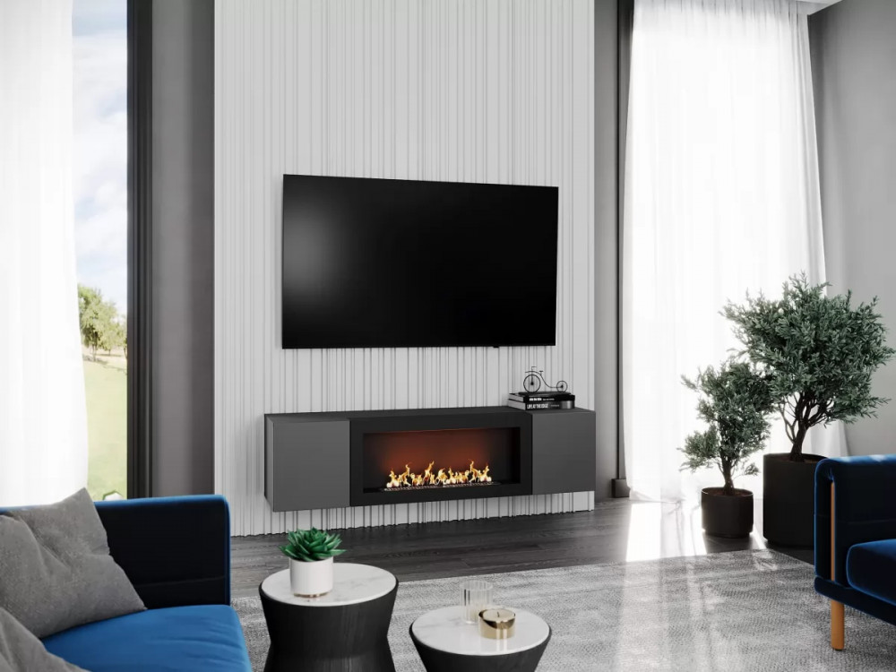 Тумба ТВ навесная с биокамином POINT ТИП-28 SBK Серый графит НК-мебель