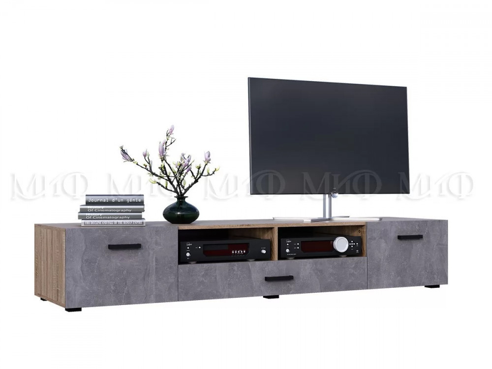 Тумба ТВ Нэнси New 2дв+1ящ ЛДСП Бетон светлый/Сонома