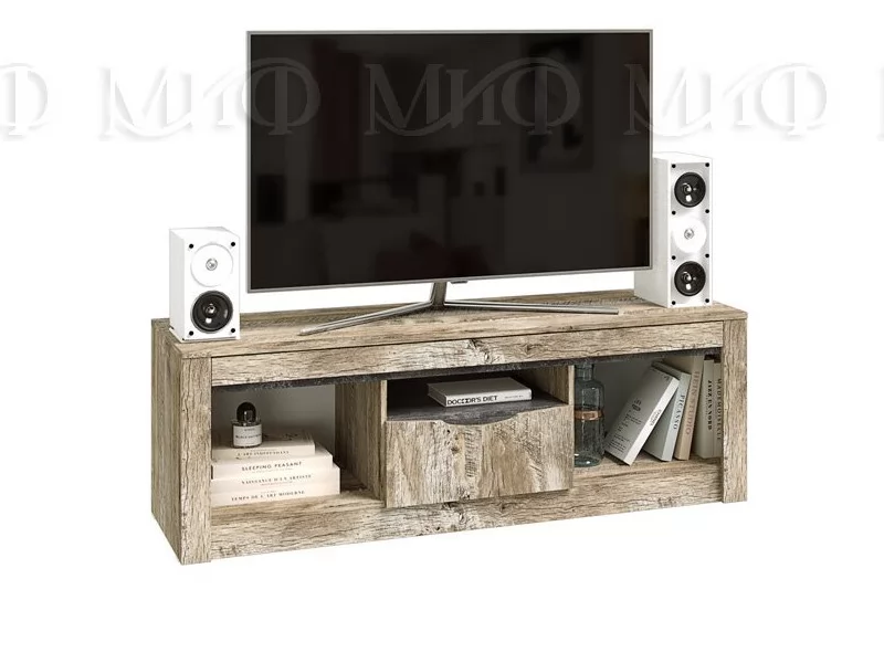 Шкаф 2-х створчатый с полками Ривьера Дуб Юкон, Бетон темный