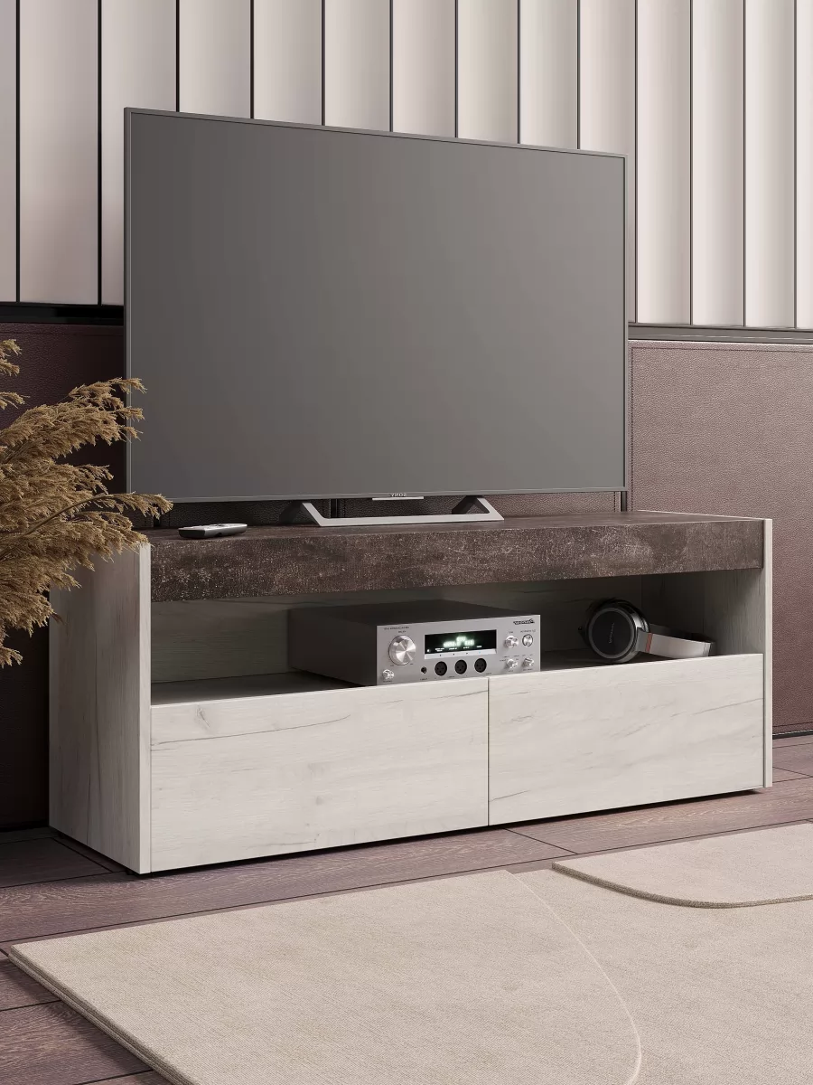 ТВ тумба Вегас Дуб Крафт Белый/Ателье темный