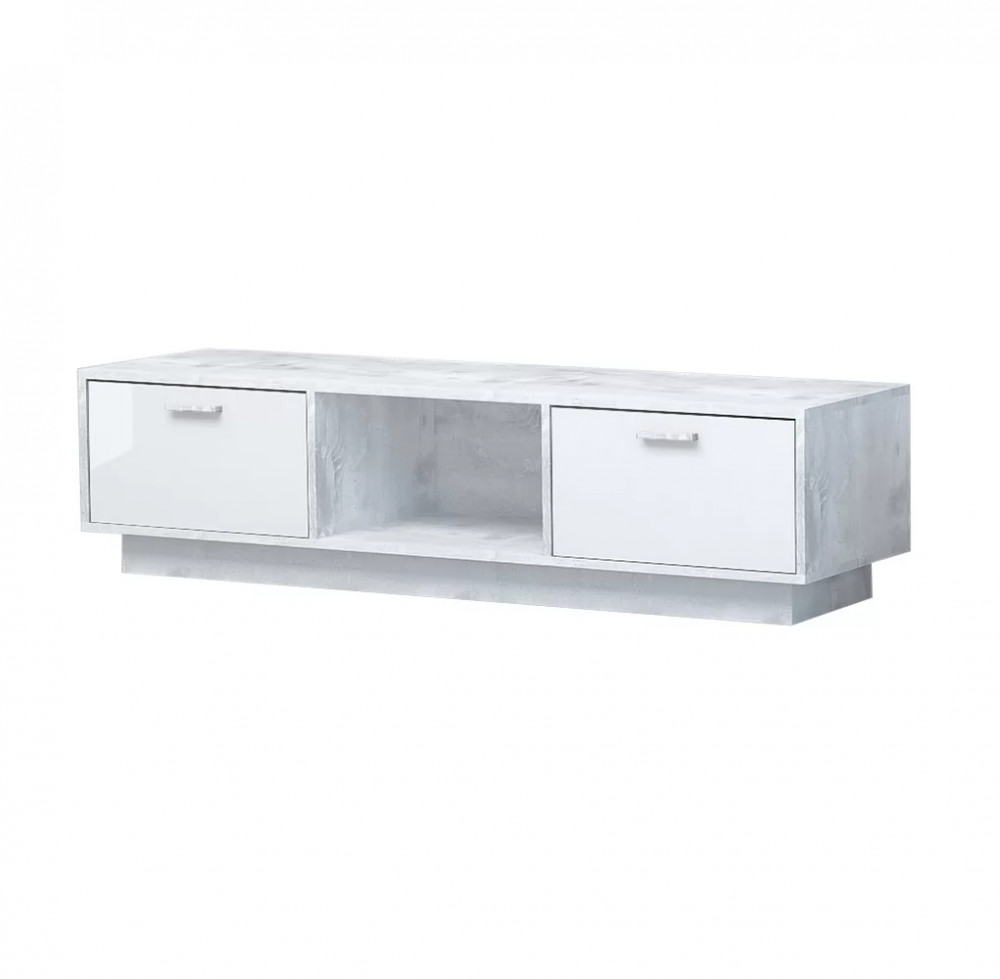 ТВ тумба Эго Т-3, бетон светлый/белый глянец, цоколь Диал