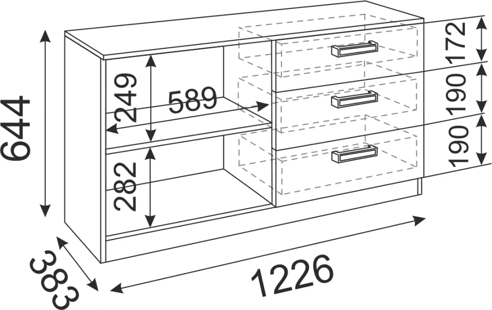 | Габариты (ВхШхГ) мм: | 644х1226х383 мм |