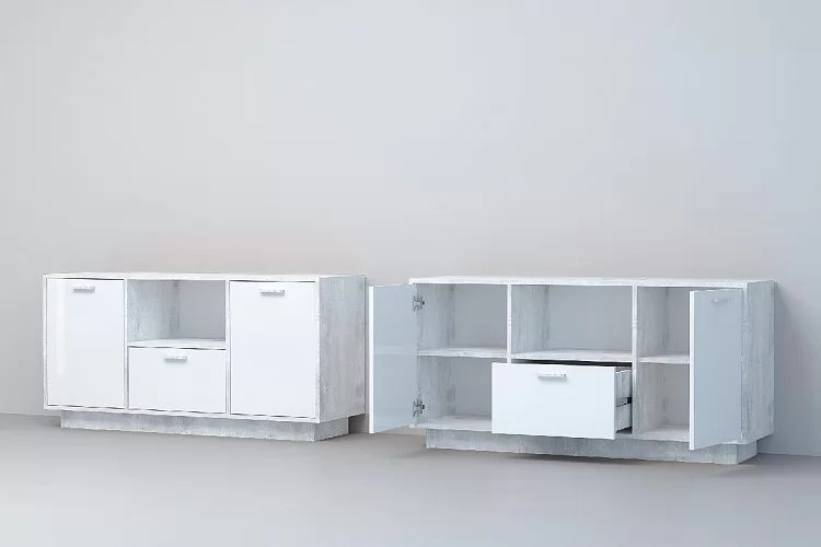 ЭГО К-1 Комод с 2мя ящиками бетон светлый/белый глянец на ножках