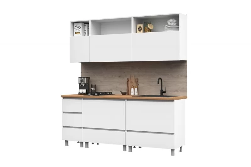 Кухонный прямой гарнитур арт.17, 3000 мм, Белый глянец