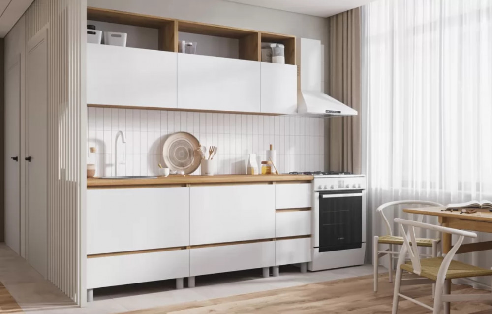 Кухонный прямой гарнитур арт.16, 3000 мм, Лайн/Тальк/Обсидиан