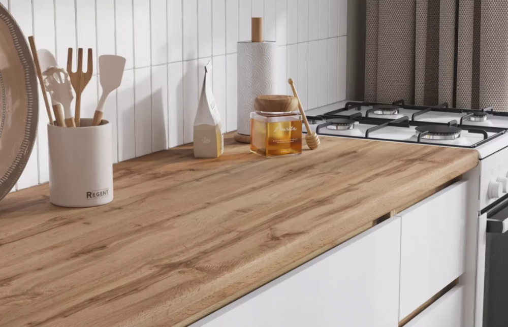 Столешница: ДСП 38 мм, покрытая слоистым пластиком; декор Дуб Вотан.