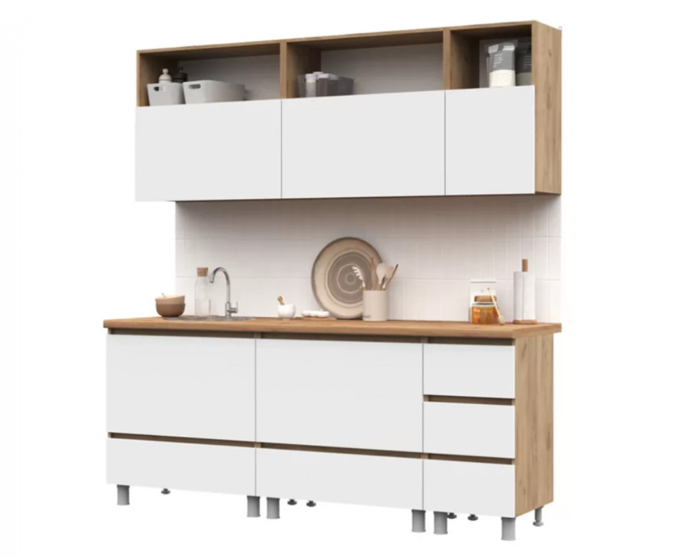 ХЕЛЕН Кухня 1.7м, ЛДСП Белый/ЛДСП Белый ПФ(38) Вотан (б/сушки, б/мойки)