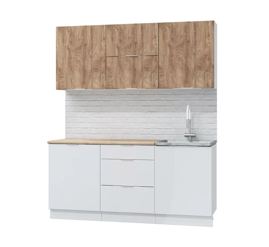 Кухонный гарнитур «Белладжио» длиной 200 см со шкафом НБ Белый, Софт капучино