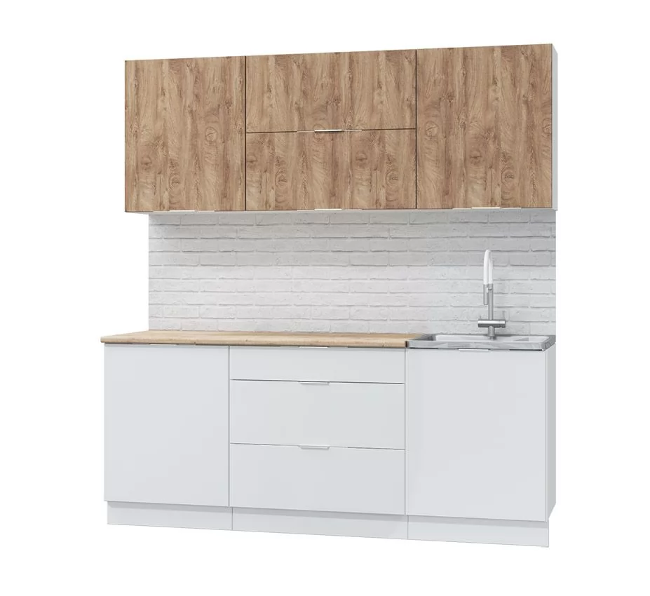 Кухонный гарнитур «Бьянка» длиной 150 см Дуб крафт золотой/Дуб ваниль/Дуб кофе